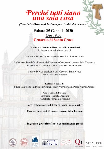Incontro ecumenico nel Cenacolo della Basilica di Santa Croce, Sabato 25 gennaio 2020, ore 19,00 Perché tutti siano una sola cosa. Cattolici e Ortodossi insieme per l’unità dei cristiani. di Chiara Marconi Una settimana quella che affronteremo, dedicata alla preghiera per l’unita dei cristiani, dal 18 fino al 25 Gennaio. Anche quest’anno la …