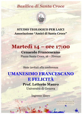 LA FELICITA’. Desiderio o utopia? / Le Conferenze della Basilica di Santa Croce / 2017 LE CONFERENZE dello Studio Teologico per Laici – Associazione Amici di Santa Croce in collaborazione con Edizioni Città di Vita Martedì 16 maggio, ore 17:00 Cenacolo francescano San Francesco e l’Oriente: Tavola Bardi e Pulpito Benedetto da Maiano dott. Angelo Tartuferi