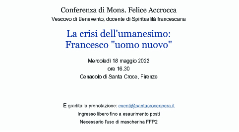 Felice Accrocca docente di Storia Medievale presso la Pontificia Università Gregoriana, ha approfondito gli studi sul francescanesimo medievale, pubblicando numerosi saggi. 18 maggio 2022 16:30 Basilica di Santa Croce