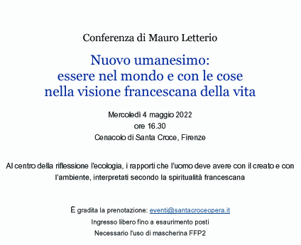 Nuovo ciclo di incontri in Cenacolo 2023 In occasione dell’ottavo centenario dell’approvazione della Regola francescana, la Comunità dei Frati Minori Conventuali e l’Opera di Santa Croce promuovono un nuovo ciclo di incontri e riflessioni. Mercoledì 19 aprile, ore 17.00, Stefano Zamagni aprirà con San Francesco d’Assisi tra ricchezza e povertà: per un’etica della frugalità. Gli incontri …