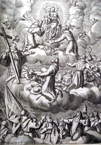 Nel tomo I, stampato nel 1721, segue l’occhietto l’antiporta calcografica incisa da suor Isabella Piccini raffigurante la gloria dei santi francescani.