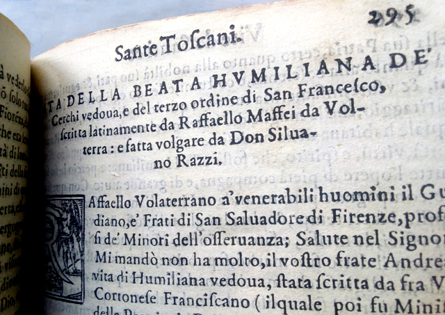 Vite de’ santi, e beati toscani, de’ quali infino à hoggi comunemente si ha cognizione. Raccolte, e parte ancora, ò scritte, ò volgarizzate dal padre abate don Siluano Razzi Camald. … In Fiorenza: per gli eredi di Iacopo Giunti, 1593.