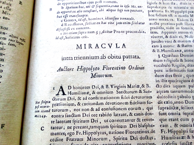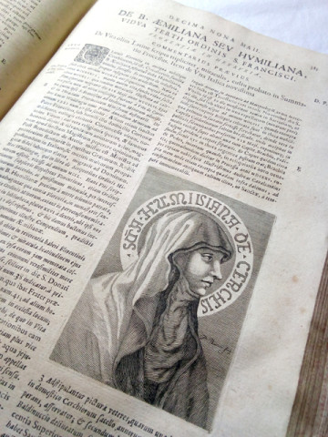 Il Commentarius de B. Aemiliana seu Humiliana con il ritratto di Umiliana eseguito da père Philibert Bouttats.