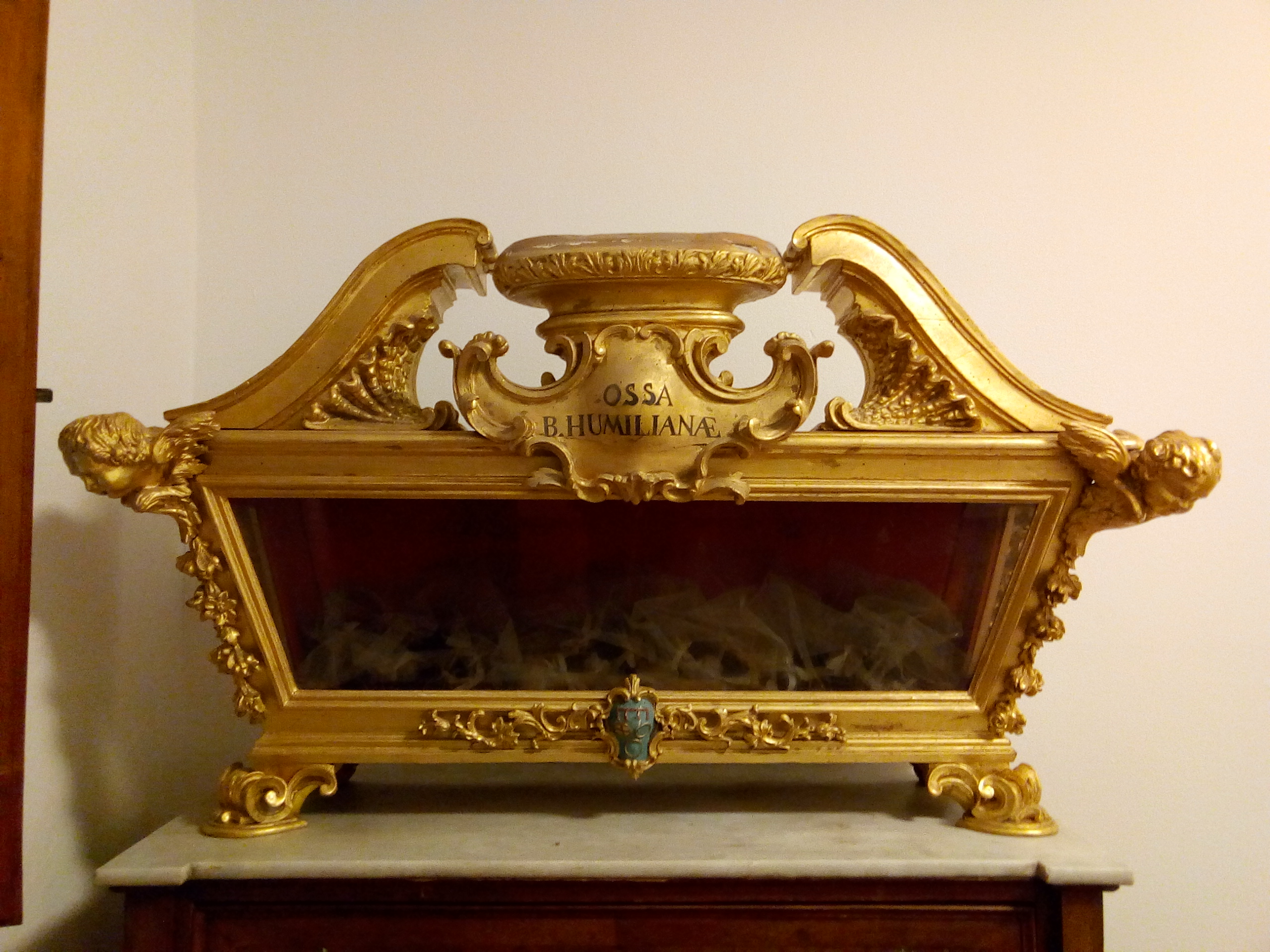 Nel 1671 il busto reliquiario era sottoposto a un restauro: per l’occasione era ripulito con il rifacimento dello smalto che costituiva lo sfondo degli stemmi di un colore più brillante al posto dell’azzurro come, invece, voleva la tradizione araldica. Sempre nel Seicento si decideva anche di sostituire l’urna contenente le ossa, rinnovata nel 1773, con una consimile ma più elegante, dorata e ricca d’intagli. Così composte, le reliquie di Umiliana avevano il privilegio di essere continuamente esposte sopra l’altare maggiore.