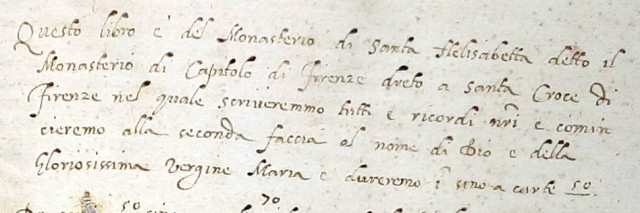 Particolare tratto dal Libro di memorie delle suore del Monastero di Santa Elisabetta (1500-1773), conservato presso la Biblioteca di Santa Croce, fondo: Archivio OFMConv.