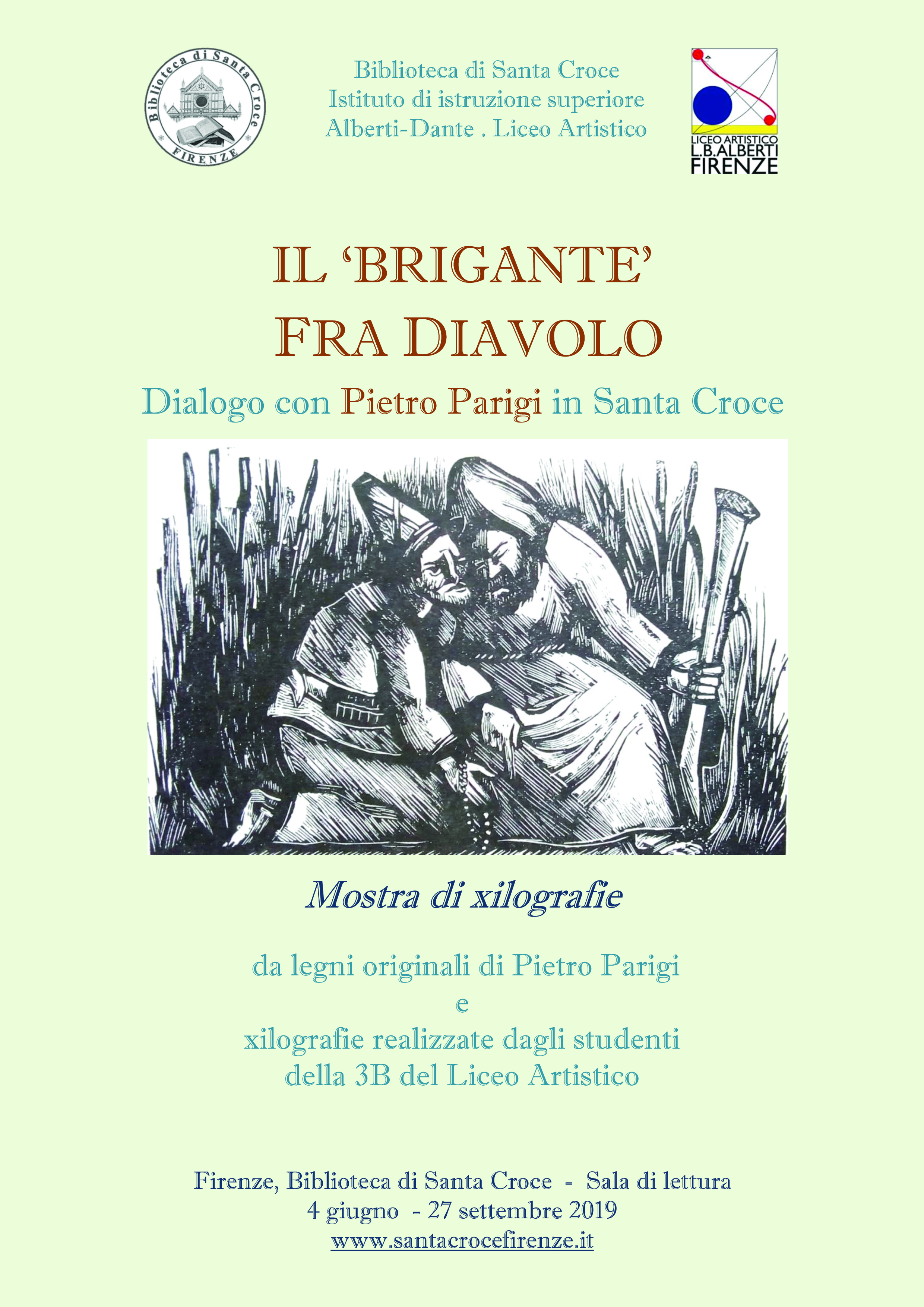 Fino a ottobre 2019 – da lunedì a venerdì – con la mostra «Il ‘brigante’ Fra Diavolo: dialogo con Pietro Parigi in Santa Croce», allestita nella Biblioteca di Santa Croce, sala di lettura, ambiente attrezzato a ospitarla (sono messi in mostra anche documenti e fotografie dell’epoca), è possibile approfondire la conoscenza di un ciclo di illustrazioni realizzate dal Maestro per il romanzo storico «Fra Diavolo» (Vallecchi, 1932).