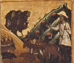 Prima manifestazione della santità di Francesco – il dominio sulle creature irrazionali – è anche l’annuncio della missione del santo e l’esposizione della sua Regola; per i destinatari della predica è invece il ritratto del vero frate minore che condivide con il povero, con l’umile lavoratore, una vita disagiata e difficile.