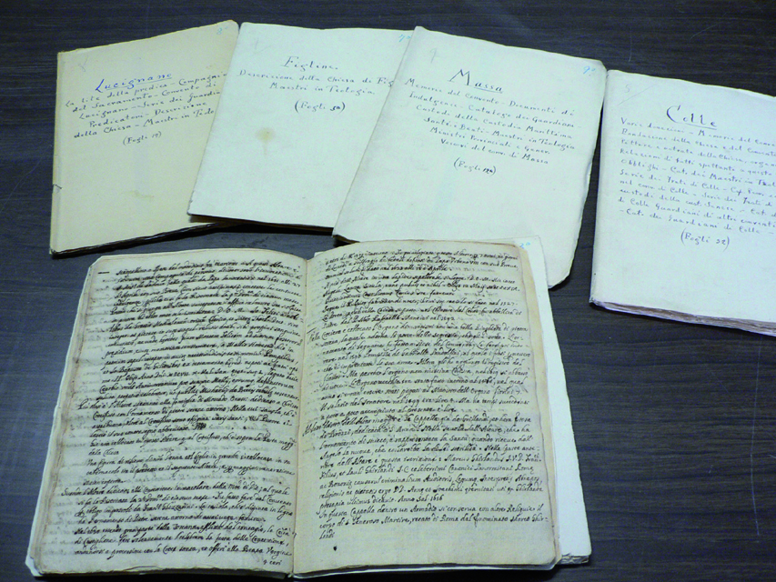 Tra i manoscritti dell’Archivio storico della ‘Provincia toscana dei frati Minori Conventuali’, consultabile presso la Biblioteca di Santa Croce, della Basilica di Santa Croce a Firenze, è di particolare interesse la raccolta di notizie sui singoli Conventi toscani fatta nel Seicento dal p. Lodovico Nuti e databile a poco dopo la metà del XVII secolo [1667/68] (con eventuali aggiunte di epoca successiva).
