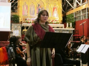 C’è gente che dice che siccome io facevo la comica, la saltimbanca, la cantastorie, il mio posto doveva stare in una terra sconsacrata. Ma per fortuna, fuori dalle mura di Firenze, ci stanno i frati di S. Francesco che sono come la peste: accolgono tutti pure loro! Qualcuno mi è venuto a prendere, si è caricato il mio corpo sulle spalle e mi ha deposto dentro le mura di Santo Francesco, nel suo convento. Sulla terra nuda stavo io, la Cennina Cencetti, e anche io avevo una terra sacra. Poi ti danno una bisaccia e cominci a camminare, camminare…Anche una LUCE ti danno… Luce…luce… [accende e spegne giocando]