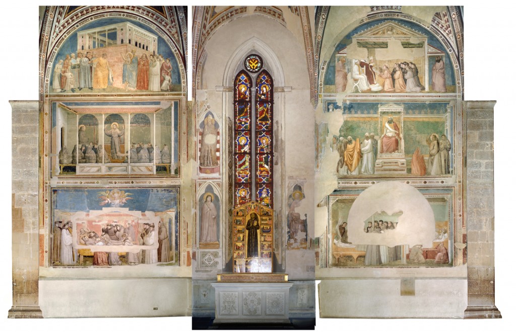 Siamo nella Cappella Bardi. Qui si è dipinto, raccontato, immaginato, pregato Francesco d’Assisi. Qui Messer Giotto [inchino] ha fatto un capolavoro, questa è la grande arte, e ha dipinto in questi affreschi la vita di Francesco d’Assisi. Ci ho pensato da dove iniziare.