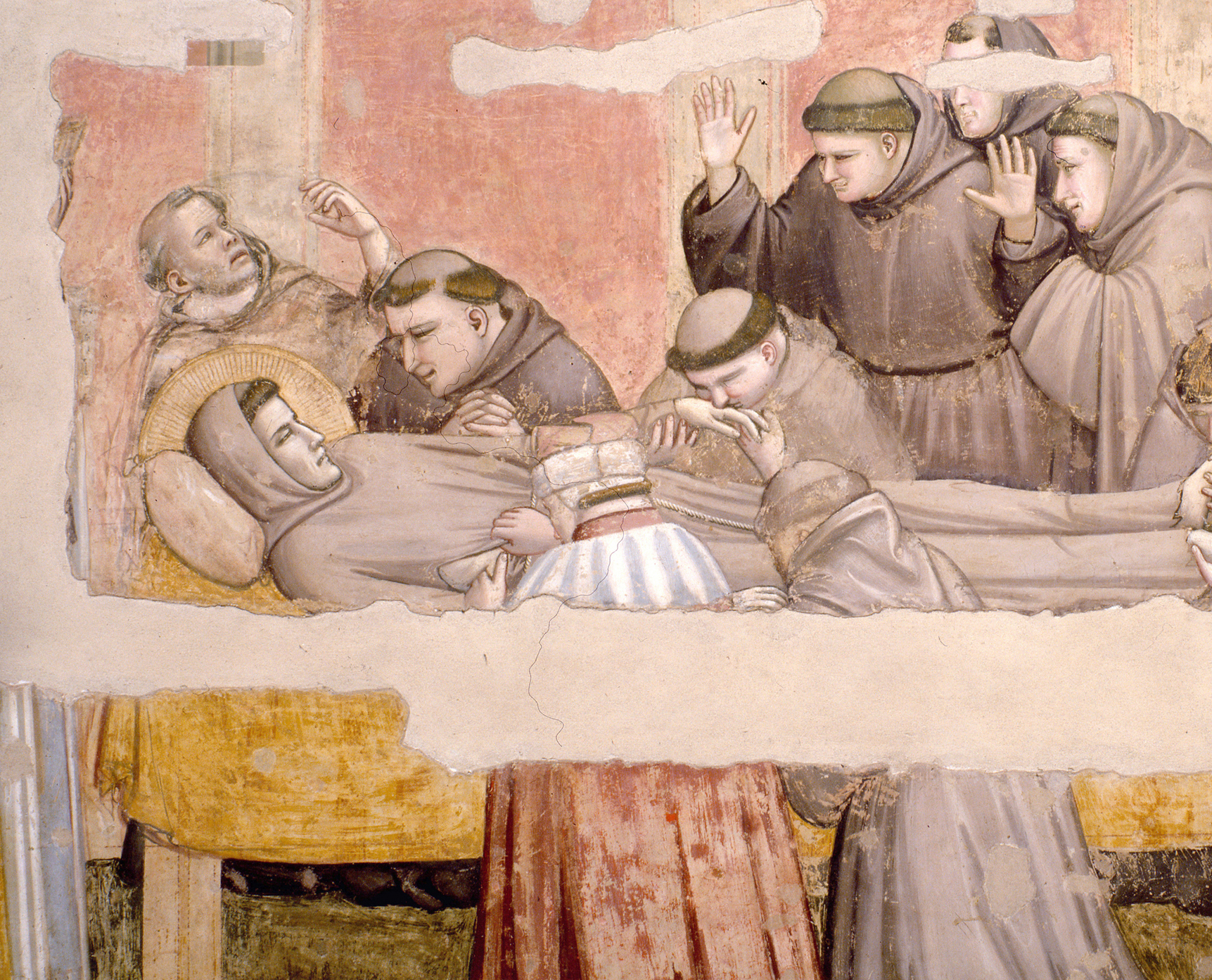 Messer Giotto in ogni frate ha dipinto un’emozione diversa: uno è sbigottito, l’altro è disperato, l’altro ancora incredulo, tutti impietriti dallo stesso profondo dolore……. Se ci penso, viene il magone pure a me!
